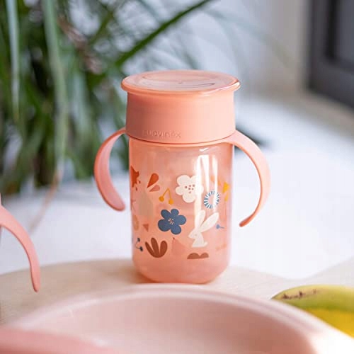 Kubek do nauki z osłoną zapobiegającą wyciekom. 360 stopni nieprzepuszczalne krawędzie do picia z dowolnego miejsca na krawędzi, idealny trening do nauki używania szkła lub podstawowego kubka. Tarcza otwiera się po naciśnięciu ust
